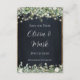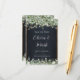 Meddela din rustika fest med detta grönska spara datum-kort, med eukalyptusblad, en kritskriftsbakgrund, träram och minimalistiska teckensnitt. Perfekt anpassningsbar mall för ladubröllop, utomhusceremonier eller trädgårdsevenemang.