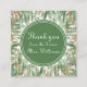 Med uppfriskande grön eukalyptus med vintage, tidlösa blad i guldglitter och gröna cirklar med vita kanter, är detta "Tack"-kort ett elegant, modernt och chic val för din Bröllopsfest. Anpassa texten för ett mer personligt tack eller låt den vara som den är och byt endast namn.