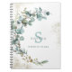 Eukalyptus Guld Glitter Botanisk Bröllopsplaneringsbok... Vår anteckningsbok för bröllopsideer till brudar innehåller ett arrangemang av vackra akvarell eukalyptusblad och bladverk i guldton som ramar in brudens namn, monograminitial och anteckningsbokens titel. Guldglitterdamm ger en lyxig elegant look till denna anteckningsbok... en genomtänkt bröllopspresent.