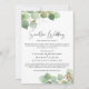 Om oförutsedda omständigheter kräver att du minskar närvaron på ditt bröllop, informera din ursprungliga utökade gästlista med elegant mindre nedskalad bröllopsinbjudan med akvareller av eukalyptusgrönska med guldbelysningar och "Mindre Bröllop" skrivet i ett stilfullt manus. Du kan enkelt anpassa bröllopsnedskalningsmeddelandet mer detaljerat.