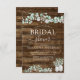 Rustik Landsbygd Utomhus på Mörkt Trä med Grönska Eukalyptus och Bomull med Krukor på Sträng Ljus Vår, Sommar, Höst eller Höst Bröllop Bröllopsfest Inbjudningar - inkluderar vacker och elegant skript typografi för den speciella Brud att Firas.