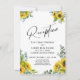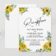 Bjud in dina gäster till din bröllopsfest med hjälp av dessa vackra blommiga kort. I designen har jag använt ett elegant handskriftsfont för att skapa en enkel grafisk typografi-overlägg som lyder "Reception". Hörnen accentueras med grafik som visar akvarellbuketter med solrosor och eukalyptusgrenar. Fyll i mallens tomma fält med dina uppgifter för att anpassa designen. Alla lager lämnades olåsta så att du också kan klicka för att ytterligare anpassa och flytta text eller till och med ändra storlek eller teckensnitt. Tveka inte att kontakta oss för hjälp med anpassning.