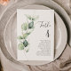 Planera din bröllopsmottagning med precision, från "spara datumet" till bröllopsdagens evenemang som mottagning och sittplatser med dessa bordskort med botaniska eucalyptusblad.