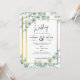 Letar du efter de perfekta bröllopsinbjudningarna för att komplettera din fantastiska grönska- och guldsmyckade tema? Sök inte längre! Vår exklusiva akvarelldesign med eukalyptusblad i nyanser av salvia grönt och smaragdgrönt med en touch av guld kommer att få din bröllopsutskick att sticka ut från mängden.