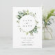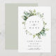 Denna bröllopsinbjudan har målad akvarell eukalyptusgrönska, gröna blad och cirkelram. För mer avancerad anpassning av denna design, vänligen klicka på "Anpassa ytterligare". Matchande artiklar finns också tillgängliga.