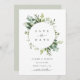 Denna bröllopsinbjudan för att spara datumet har målad akvarell eukalyptusgrönska, gröna blad och cirkelram. För mer avancerad anpassning av denna design, vänligen klicka på "Anpassa ytterligare"-länken. Matchande artiklar finns också tillgängliga.