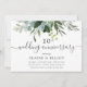Den här specialskrivna födelsedagsinbjudan har målad akvarell-eukalyptus, gröna blad med modern kalligrafi. För mer avancerad anpassning av denna design, vänligen klicka på länken "Anpassa ytterligare". Matchande artiklar finns också tillgängliga.