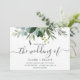 Denna bröllopsinbjudan har målad akvarell eukalyptus, gröna blad med modern kalligrafi. För mer avancerad anpassning av denna design, vänligen klicka på "Anpassa ytterligare". Matchande artiklar finns också tillgängliga.