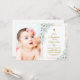 Prisvärd specialtryckt dopinvitation för flicka. Denna vackra design har vattenfärgade gröna blad och en förgylld ram. Anpassa designen med detaljerna från ditt barns dopfest. Baksidan har ett förgyllt kors med vattenfärgade eucalyptusblad eller använd utrymmet för att lägga till ytterligare text och foton. Klicka på Anpassa för att välja valfri bakgrundsfärg och redigera textens teckensnitt och färger för att skapa en unik dopinvitation för din lilla flicka.