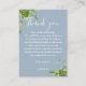 En elegant eukalyptusgrönska botanisk damblå bröllop tack mottagning kort, personlig med ett speciellt meddelande och brud och brudgummens namn. Designad av Thisisnotme©