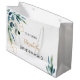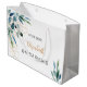 En chic vit bakgrund. Dekorerad med akvarellmålad eukalyptusgrönska och gyllna blad. Anpassa och lägg till ett datum och namnet på brudtjänsteflickan.