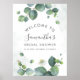 Modern bröllopsduschskylt för en trendig botanisk temadusch och födelsedagsfirande. Med grönska eukalyptus och vattenfärgsmink bakgrund. Ändra enkelt detaljerna genom att klicka på "Personifiera"-knappen ovan.