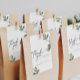 Moderna tack-kort för dina bröllopsfestgåvor med handmålade akvarellblad av eukalyptus. Perfekt för en grön bröllopste-fest.