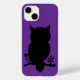 Ein Scherenschnitt einer Eule, die auf einem Ast, zwischen einer Blüte und Blättern, sitzt.