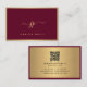 Anpassningsbar Modern Elegant Professionell Design Calligraphy Script Monogram QR Code Template Euro/Europe/European Storlek Semi-Gloss Luxury Bordeaux and Guld Affärskorts. Perfekt för Real Gods Agent, Accountants, Realtors, Brokers, Attorneys, Lawyers, Läkare, Corporate Professionells, Stylist, Architects, Ingenjör, Directors, Managers, Consultants, Designers, Teacher, Musician, all Professionals.