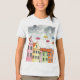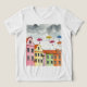 The image is a watercolor painting depicting a colorful European street on a rainy day.