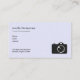 Visitenkort för ett res- eller fotograferingsrelaterat yrke eller företag. Designat med en grafisk illustration med europeiska landmärken som lutande torn i Pisa, Big Ben, Eiffeltornet osv... En varmluftsballong på himlen och en dubbeldäckare buss, med en stor kamera. Ett stämpel med de egyptiska pyramiderna fast på kameran.