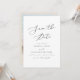 I bröllop spara datum finns ett elegant med kalligrafi-skript och modern minimalistisk design med ett krämt beige fotobakgrund. Lägg enkelt till din foto- och bröllop-webbplats på baksidan om du vill få en personlig beröring.