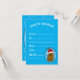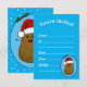 Bedårande rolig söt lycklig brun seriefigur-potatis som bär en röd och vit tomtehatt. Potatisen är i en seriefigur-stil och färgad brun, han har pinn-armar och fingrar och ett stort lyckligt leende med prickar för ögon. Tomtehatten på hans huvud är röd med en vit kant och en vit pompom som hänger ner. Han är inuti en ljusblå oval form med en mörkblå ram och två gröna julgranar med två röda bär högst upp på ovalen. Bakgrundsfärgen är en klar ljusblå med vita snöflingor som flyter omkring för att ge en festlig känsla till dessa söta säsongsbetonade inbjudningar.