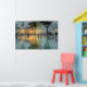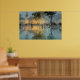 A peaceful small-town square glows under twilight after rain, with a warmly lit historic church and bell tower anchoring the scene. Shimmering puddles on the pavement reflect golden light, teal shadows, and soft blues while families, children, and townspeople gather in quiet joy amid tall trees and modest buildings. Loose, painterly strokes capture nostalgia, community warmth, and the gentle magic of everyday life at dusk—ideal for cozy living rooms, entryways, home offices, reading nooks, or as heartfelt gifts for anyone who cherishes small-town charm, family moments, faith-inspired serenity, or impressionist emotional landscapes.