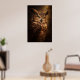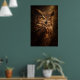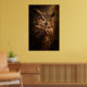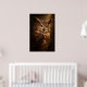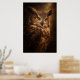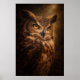 En vaksam uggla framträder ur djup skugga i denna dramatiska vilda djurporträtt. Varmt ljus avslöjar rika fjäderstrukturer och genomträngande gyllene ögon, som fångar den tysta intensiteten hos en nattlig jägare.