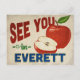 Ett charmerande Everett Washington vintage resor-vykort med ett vackert rödäpple, tillsammans med roligt retro stil som säger: "Se dig i Everett"