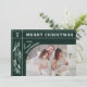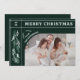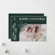 En vacker hand illustrerade varggrön design med prydnadsföremål och vinterfåglar ger ett modernt julkort. Ditt eget foto kan läggas till.