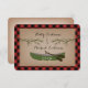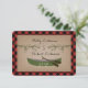 A bröllop r.s.v.p. med illustration av två evergreen träd grenar och en grönt canoe. Bakgrunden är röd och svart. Anpassa texten.