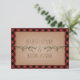 A bröllop r.s.v.p. med illustration av två evergreen träd grenar. Bakgrunden är röd och svart. Anpassa texten.