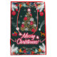 Det här är en glatt juldesign med guldfärgad Julgran, ljus, snöflingor och mörk grönt bakgrund med tusentals stjärnor.