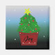 En söt dekorerade Julgran med en gyllene stjärna överst. En röd skuggad kruka med meddelandet "Joy" på den. En mjuk nattbakgrund.