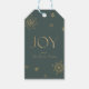 Öka din presentförpackning med vår "Modern Joy Snowflake"-märkre för helgdag. Den innehåller ord "JOY" som är adorderad med elegant snöflingor i simulerad guld-folie mot ett djupt, grönt färg. Den här märkrn i personligen tillför din gåva en aning magi, som förkroppsligar säsongens glädje och glädjen att dela.
