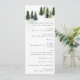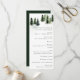 Inslag: vattenfärgskonserver, gräs, fir, utstrykning av ett unikt bergsglen. Klassisk serif typsnitt för text. Färg: grönt, högland, jägare, moss, teal, vit, svart. Teman: Vintern, bergskedjor, utomhus bröllop, land, rustika, vandring, skogsbruk, outdoorsy. Samling: Produkttyp Evergreen Mountain Glen White Grönt Black Bröllop: Program: Program