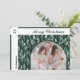 En vacker hand illustrerade varggrön design med prydnadsföremål och vinterfåglar ger ett modernt och elegant julkort. Ditt eget foto kan läggas till.
