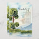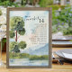 Sittplatskarta för bröllopsbord med akvarellmotiv från Lake Evergreen med nummer och gästlista på en idyllisk landskapsbild. Bordnumret och gästernas sittlista är redigerbara och visas på båda sidor. Akvarell landskapsmotiv med gröna träd och grönska, blåa berg och en lugn sjö under en klar blå himmel. Designen är i nyanser av dammig blå, blåviolett och grön och är skriven med elegant skrivstil och modern typsättning. Vänligen bläddra i min Lake Evergreen-samling efter matchande föremål eller skicka ett meddelande till mig för att skapa de mallar du behöver.