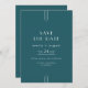 This simple art deco wedding save the date from the Everly Collection features a deep teal background, refined parisian typography, and delicate white line accents. It's modern, minimalist, and perfect for retro-inspired weddings.
