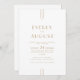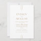 Den här dubblans bröllopsinbjudan från Everly Collection har en minimalistisk vit design med slimmad konst deco linjer och varm guld-typ. Den centrerade layouten och det generösa mellanrummet ger ett polerat, modernt utseende. Spara papper genom att inkludera en QR-kod för gästen för att visa information, OSA eller båda.