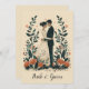 Fångar det tidlösa ögonblicket av ett pars omfamning på deras bröllopsdag, inramad av ett elegant blomsterfjädermotiv, perfekt för bröllopskort och dekoration.