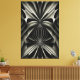 Flödande linjer expanderar och konvergerar till en hypnotisk virvel av ljus och skugga. Konsten skapar en tredimensionell illusion som frammanar rörelse, djup och mystik, likt en abstrakt portal som förbinder det verkliga med det oändliga.