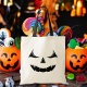 Gör Halloween-extra till en elak Jack O'Lantern Pumpkin Ansikte Tote Bag! 🎃 för barn 😈 Perfekten samlar in behandlingar eller fraktar skämtartiklar, dess ondskefulla flin ger en lekfull skräm till varje trick eller treat äventyr. Söt, läskigt och helt Halloween-redo!