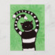Brevkort från Onda kattunge vår med en digital illustration som visar en tecknad som är en vit och svart katt med underligt klämd tass, grönt löv bakom. Denna vår-utformning i roligt kommer att tilltala en galen katt dam och alla kattälskare där ute som tycker om lite sorg också.