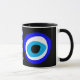 Kaffe/Tea Mugg: Evil Öga Talisman & Amulet för skydd mot negativitet och lycka till bringare. Traditionellt kommer från arabiska, turkiska, grekiska stammar och skyddar er från all illvilja som annars skulle kunna ha en negativ inverkan på ert välbefinnande eller ert liv i allmänhet. Den onda "förbannade" legenden om öga som tros vara kastad av en illvillig bländning, vanligtvis ge till en person, när han/hon inte känner till detta.