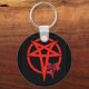 Ett inverterat rött pentagram på en svart bakgrund med ett mindre pentagram med ont skrivet inuti.