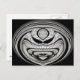 Mycket manipulerad bild av ett konsthugg av himmel i svartvitt. Det har ögon en tung och en stor flin.