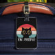 Lustigt, färglöst stil-design med söt, svart katt och färgstark, strimlad dekoration och "Ew, People"-textdesign