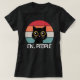 Lustigt, färglöst stil-design med söt, svart katt och färgstark, strimlad dekoration och "Ew, People"-textdesign