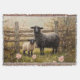 En hjärtslitande målning av en skonsam tacka och hennes lekande lamm i en lush vår-ängel fylld med färska gröna och blommande vilda blommor. Den här charmerande landskapsscenen fångar värmen och vårtidens förnyelse på gården.