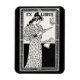 Bokskylt från art nouveau i en dam som gör penna för skrivning