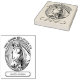 En Ex libris (Bok Tillhör till) frimärke med en kameo stil porträtt på en häst med en snyggt box nedan för ditt namn.