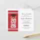 Lägg till ditt examensår, namn och detaljer om lokalen med datum till denna moderna djärva röda och vita bakgrund med svart typografi examensfest inbjudan genom att använda vår " Anpassa"-knapp ovan